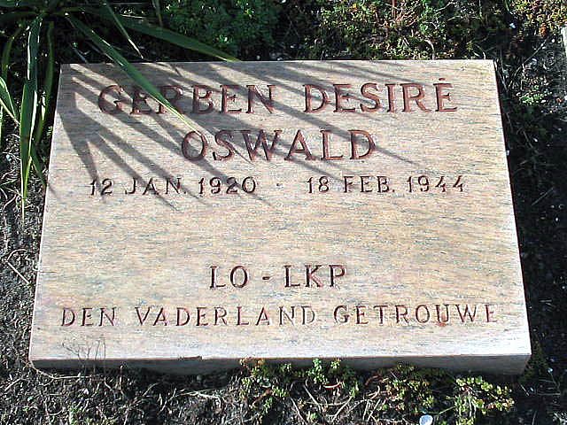 - er is een brief ontvangen op 27 nov '45 van de Gemeente Amsterdam, afd. BSO met het volgende bericht: "blijkens een schrijven van de Chef polizei standgericht Velp van 8 maart 1944, is het vonnis 18 maart (*) voltrokken voor Gerben D. Oswald; zijn laatste woonplaats is onbekend."
